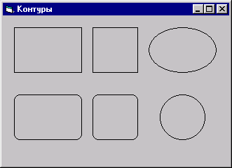При создании стандартных контуров можно использовать внутренние константы Visual Basic:vbShapeRectangle, vbShapeSquare,vbShapeOval,vbShapeCircie, vbShapeRoundedRectangle И vbShapeRoundedSquare.