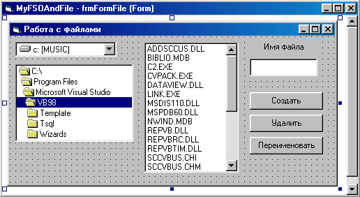 Разработаем приложение для изучения работы с файлами. Для этого воспользуемся приложением, созданным в предыдущем примере при рассмотрении работы с папками. Откройте приложение и модифицируйте его следующим образом: