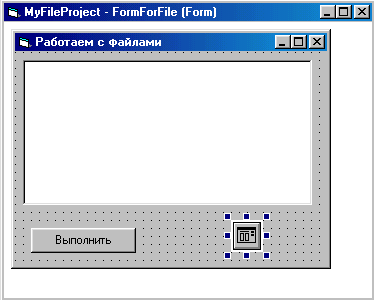 5. В свойство caption формы введите заголовок Работаем с файлами.