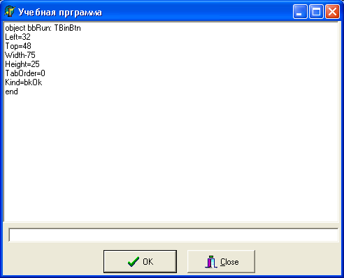 Следующий обработчик bbRunciick выведет в редактор mmOutput свойства кнопки bbRun:
