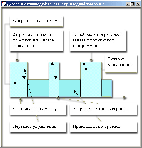 случае однозадачной ОС, такой как MS DOS, взаимодействие между тремя объектами,