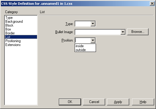10.22. Вкладка List диалогового окна CSS Style Definition