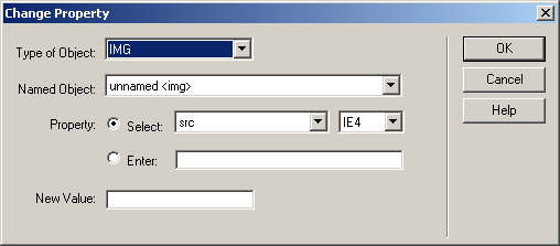 иного объекта, воспользуйтесь поведением change Property. Выберите одноименный