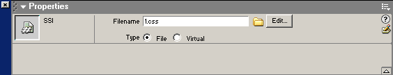 кнопку Edit, вы сможете отредактировать файл серверного включения. Dreamweaver