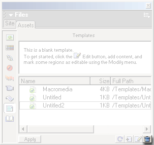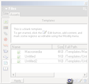 Иногда после манипуляций в панели Site Dreamweaver или окне Проводника Windows список шаблонов отображает неверную информацию. В частности, в нем могут быть перечислены уже удаленные шаблоны. Чтобы обновить содержимое списка шаблонов, выберите пункт Refresh Site List контекстного или дополнительного меню или нажмите кнопку Refresh Site List, расположенную в правом нижнем углу панели Assets (рис. 9.18).