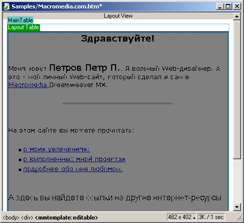 документа Dreamweaver изменяемая область, в которую мы превратили основное содержимое